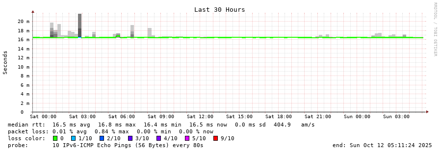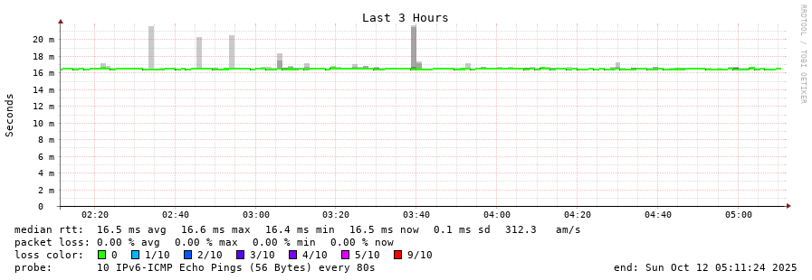 12 > one.one.one.one (2606:4700:4700::1111) [AS13335] 16.550ms 16.544ms 16.532ms