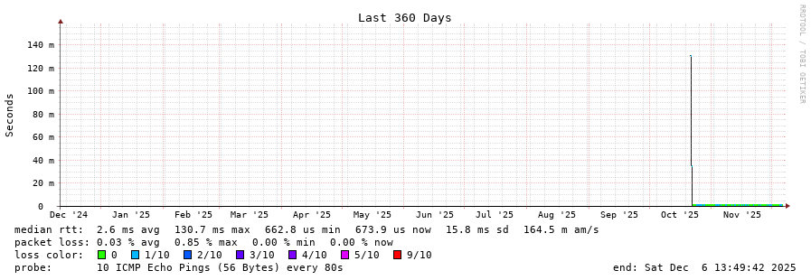 traceroute to 173.246.100.11 (173.246.100.11), 30 hops max, 60 byte packets - Generated at 2025-12-06 13:30:01