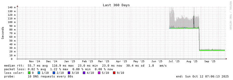 traceroute to 2801:1b8:10::b (2801:1b8:10::b), 30 hops max, 80 byte packets - Generated at 2025-10-12 05:15:01