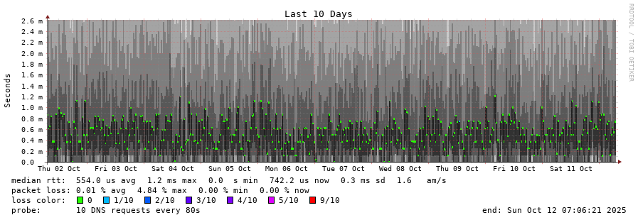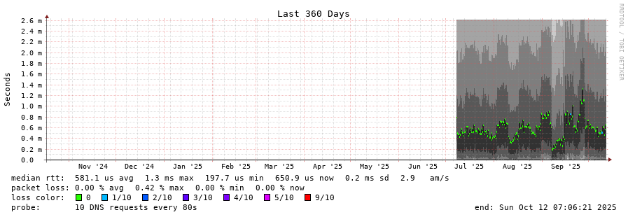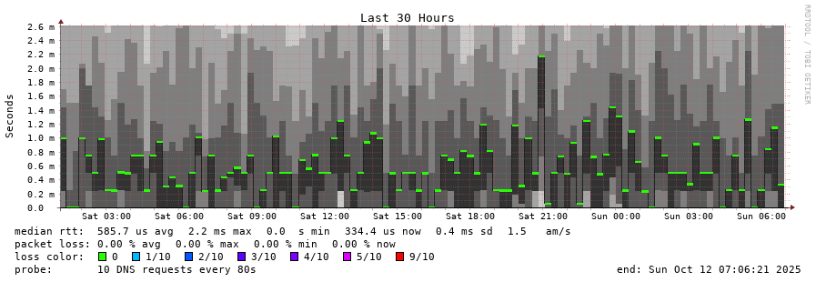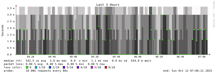 traceroute to 199.7.91.13 (199.7.91.13), 30 hops max, 60 byte packets - Generated at 2025-10-12 05:15:01 3 > decix-mad.woodynet.net (185.1.192.87) [*] 3.161ms 5.721ms 3.100ms 4 > d.root-servers.net (199.7.91.13) [AS10886] 0.281ms 0.254ms 0.210ms
