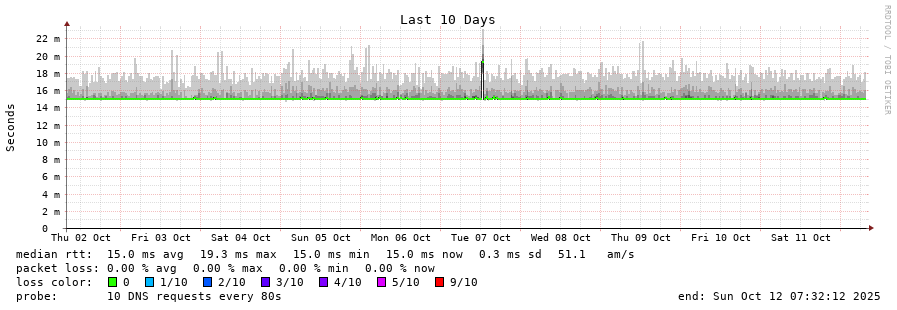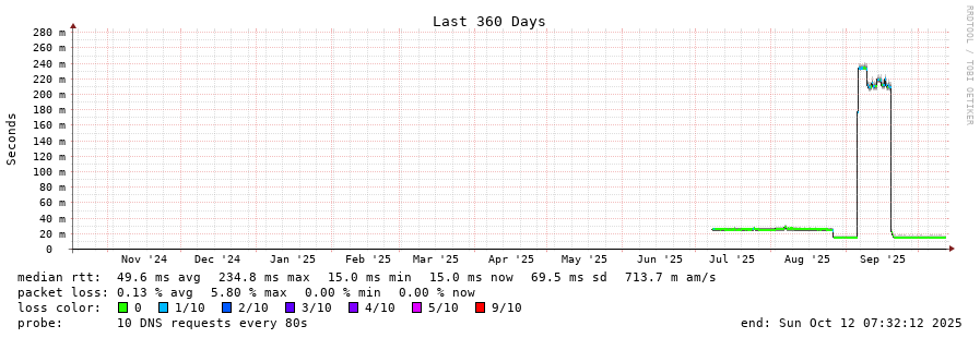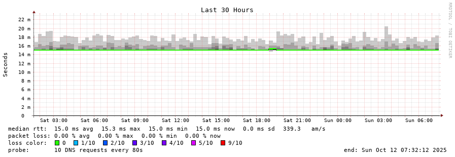 traceroute to 2001:7fe::53 (2001:7fe::53), 30 hops max, 80 byte packets - Generated at 2025-10-12 05:15:01