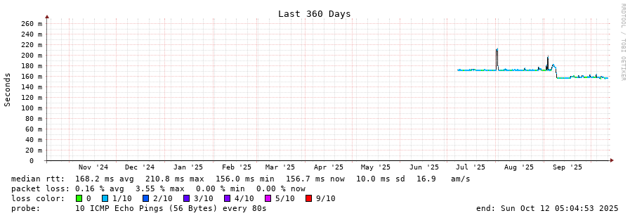 13 > 125.214.162.138 (125.214.162.138) [AS18001] 156.834ms 156.635ms 156.905ms