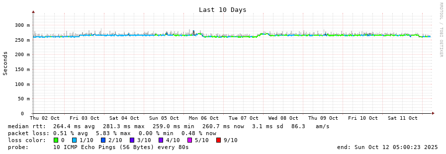 10 > 61.126.92.2 (61.126.92.2) [AS4713] 265.727ms 265.710ms 265.716ms
