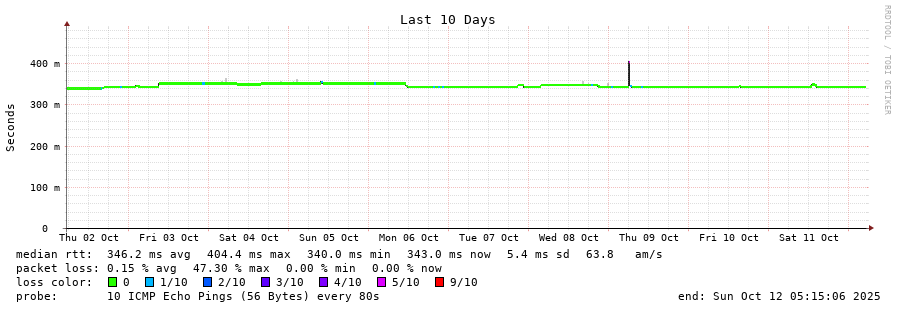 12 > be2.bdr02.syd11.nsw.vocus.network (114.31.192.105) [AS4826] 294.848ms 294.963ms 294.850ms