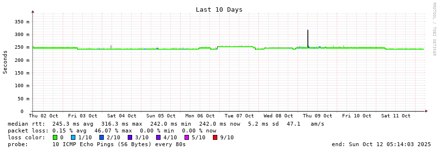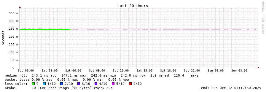 11 > 148.109.6.170 (148.109.6.170) [AS8220] 251.755ms 251.785ms 251.781ms