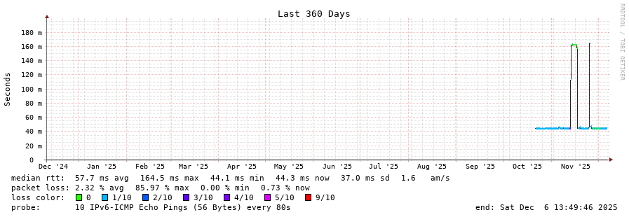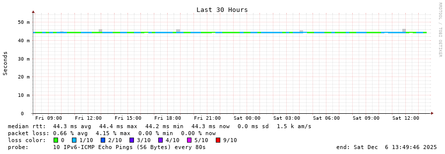 traceroute to 2001:4350:1:1::ff90 (2001:4350:1:1::ff90), 30 hops max, 80 byte packets - Generated at 2025-12-06 13:30:01