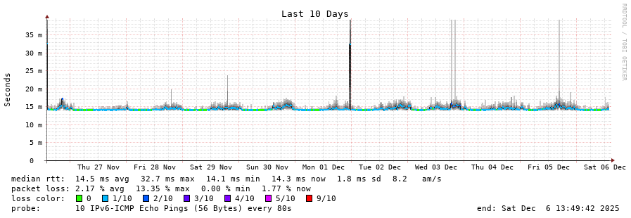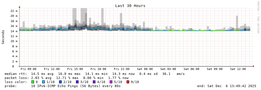 traceroute to 2c0f:5400:2:15::1 (2c0f:5400:2:15::1), 30 hops max, 80 byte packets - Generated at 2025-12-06 13:45:02
