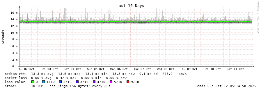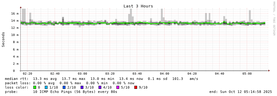 traceroute to 81.184.0.1 (81.184.0.1), 30 hops max, 60 byte packets - Generated at 2025-10-12 02:15:01 3 > 4 > 5 > 6 > 7 > 8 > 9 > 81.184.0.1.dyn.user.ono.com (81.184.0.1) [AS6739/AS12430] 143.451ms 16.587ms 16.427ms