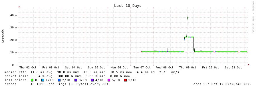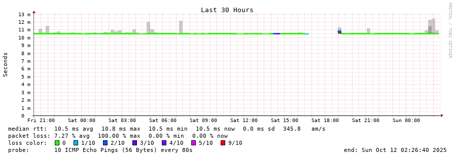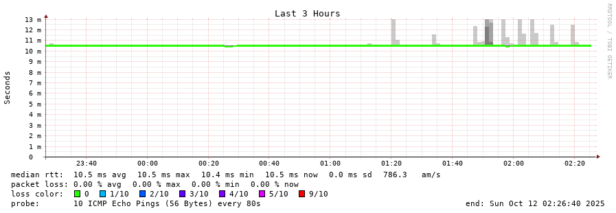 11 > atlas-probe.ip6.fccn.pt (193.136.2.26) [AS1930] 10.457ms 10.431ms 10.409ms