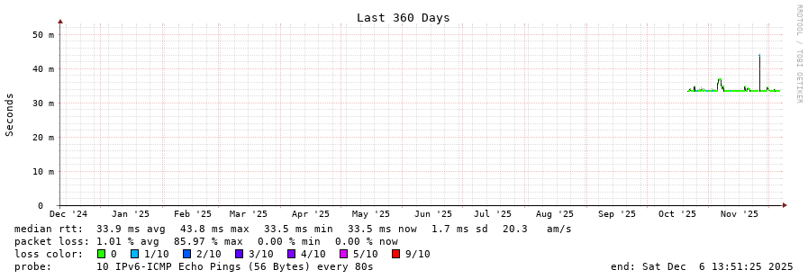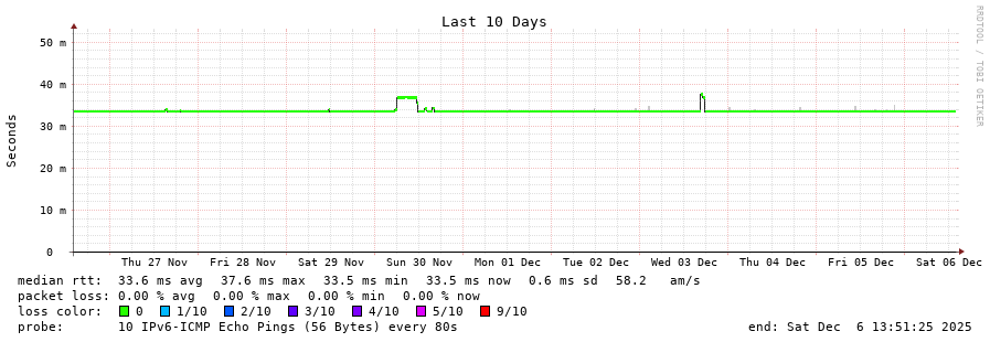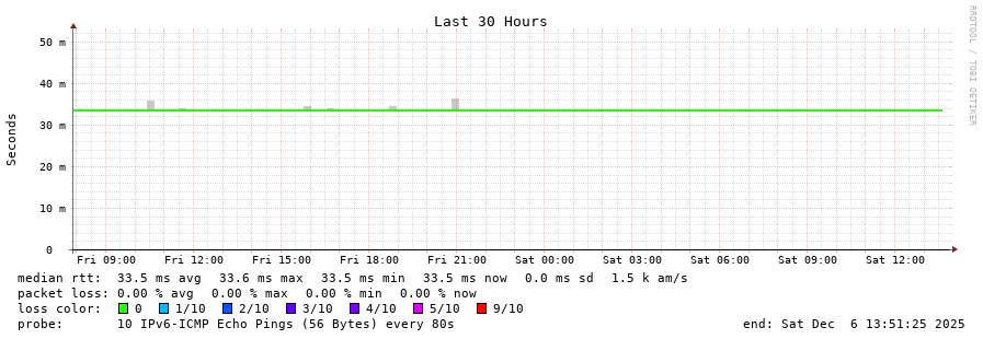 traceroute to 2001:b68:d::28 (2001:b68:d::28), 30 hops max, 80 byte packets - Generated at 2025-12-06 13:30:01