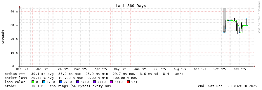 traceroute to 44.32.77.3 (44.32.77.3), 30 hops max, 60 byte packets - Generated at 2025-12-06 13:30:01