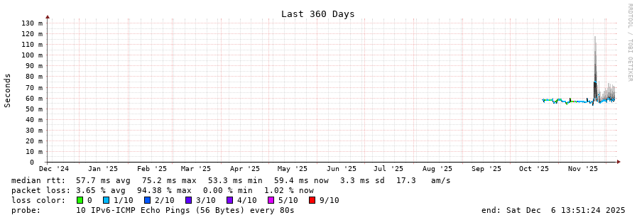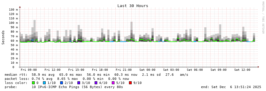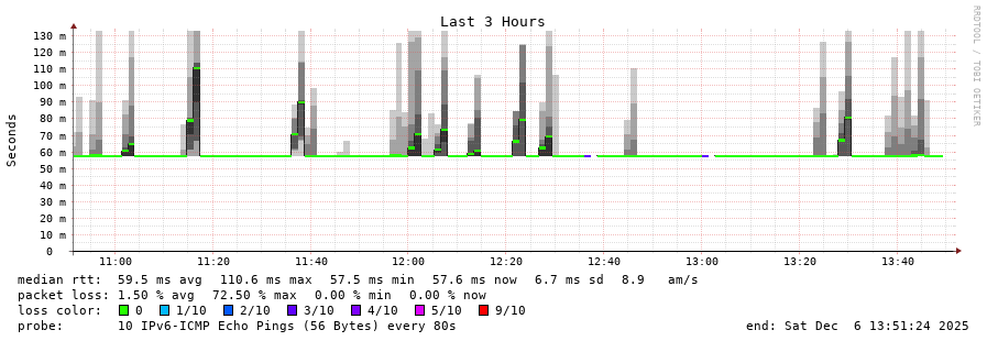 traceroute to 2a0c:9a40:8610:e3f::1 (2a0c:9a40:8610:e3f::1), 30 hops max, 80 byte packets - Generated at 2025-12-06 13:30:01