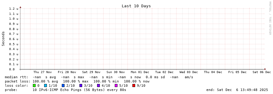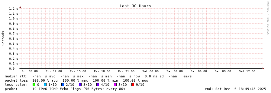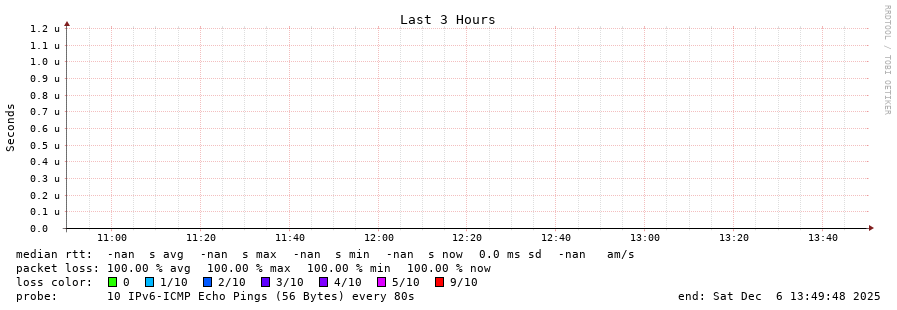 traceroute to fd69:226f:3a3c::2 (fd69:226f:3a3c::2), 30 hops max, 80 byte packets - Generated at 2025-12-06 13:45:02