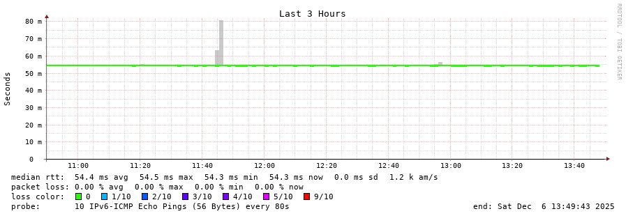 12 > 2a02:2f00:8708::e7 (2a02:2f00:8708::e7) [AS8708] 52.239ms 52.245ms 52.266ms