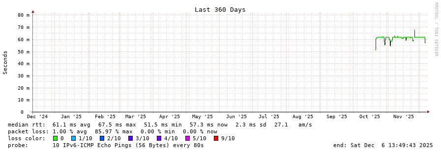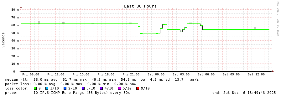 traceroute to 2a0c:ca80::41 (2a0c:ca80::41), 30 hops max, 80 byte packets - Generated at 2025-12-06 13:30:01
