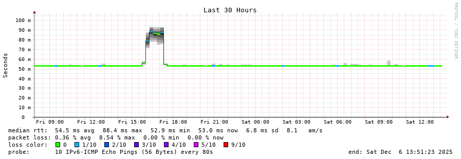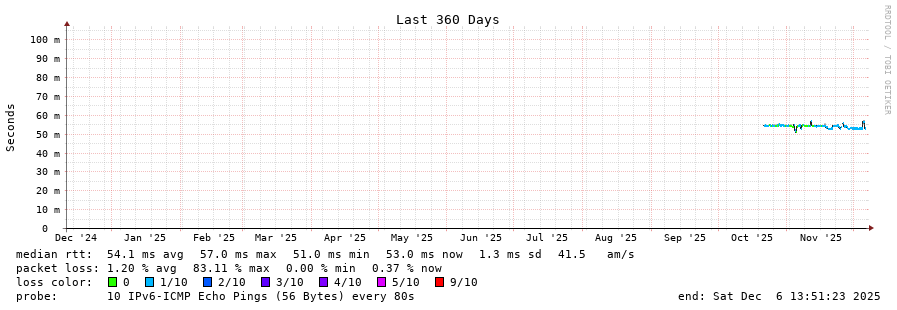 traceroute to 2a0b:2f00:0:234::151 (2a0b:2f00:0:234::151), 30 hops max, 80 byte packets - Generated at 2025-12-06 13:45:02