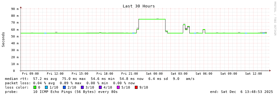 12 > de-cix.v4.telecomit.ro (80.81.195.242) [*] 55.818ms 53.989ms 53.856ms