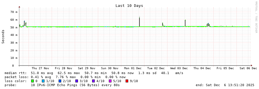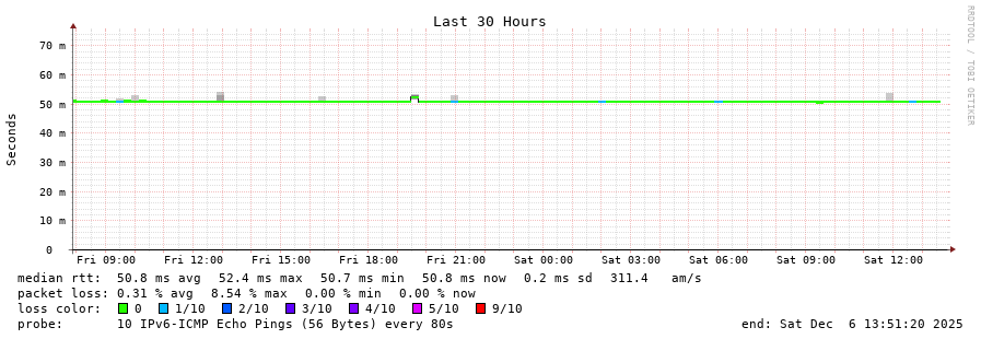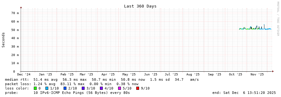 traceroute to 2a03:8f84::f1b6:9702:29c:9062 (2a03:8f84::f1b6:9702:29c:9062), 30 hops max, 80 byte packets - Generated at 2025-12-06 13:45:02