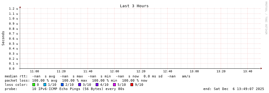 traceroute to fd9b:f75:a3d5::2 (fd9b:f75:a3d5::2), 30 hops max, 80 byte packets - Generated at 2025-12-06 13:30:01
