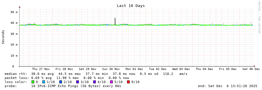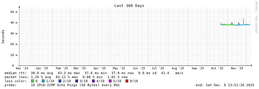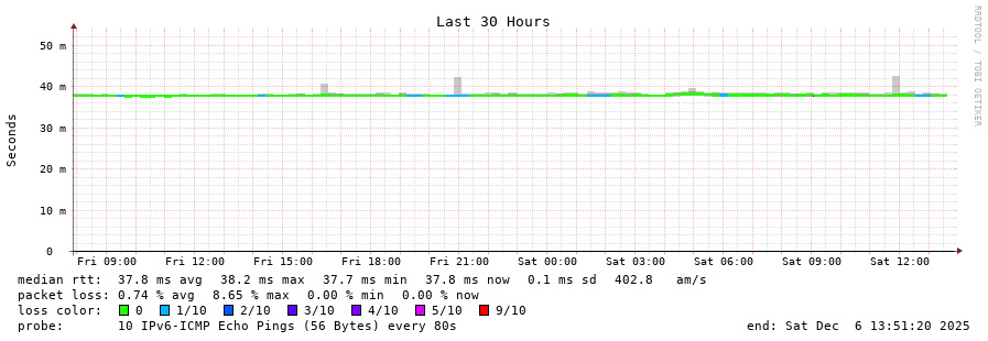 traceroute to 2a03:bb40:1::b (2a03:bb40:1::b), 30 hops max, 80 byte packets - Generated at 2025-12-06 13:45:02