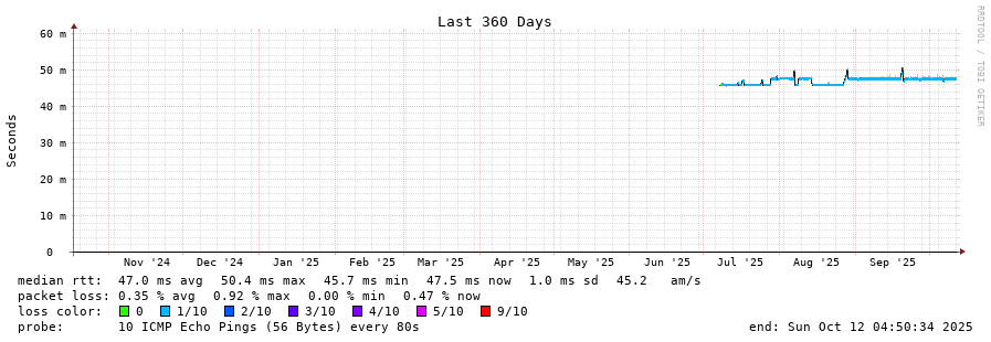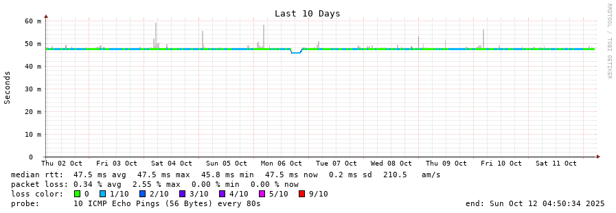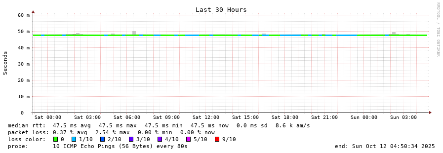 12 > 212.200.5.70 (212.200.5.70) [AS8400] 48.032ms 47.940ms 47.939ms