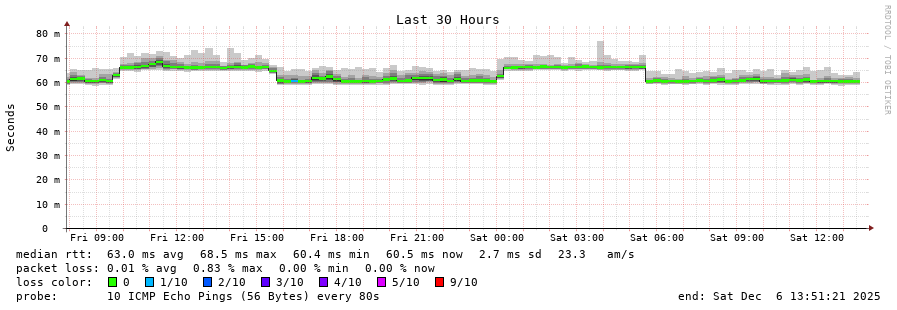 traceroute to 85.83.136.146 (85.83.136.146), 30 hops max, 60 byte packets - Generated at 2025-12-06 13:45:02