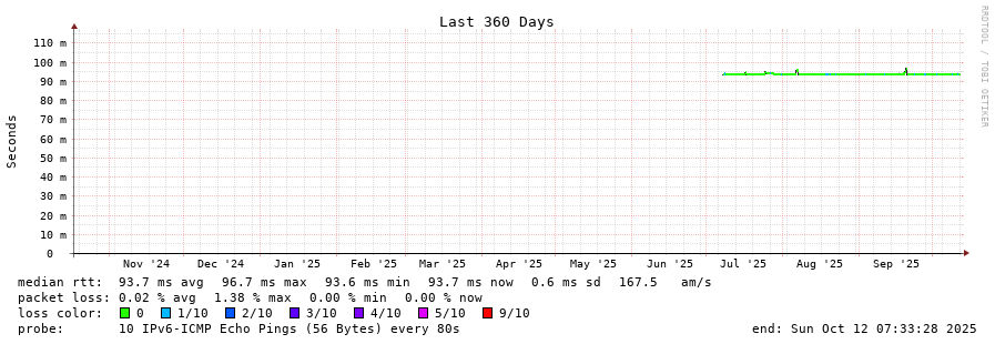 12 > 2604:2dc0:0:101::4eb (2604:2dc0:0:101::4eb) [AS16276] 94.426ms 94.404ms 94.354ms