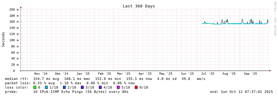 traceroute to 2604:2dc0:301::2:0:376 (2604:2dc0:301::2:0:376), 30 hops max, 80 byte packets - Generated at 2025-10-12 05:00:01