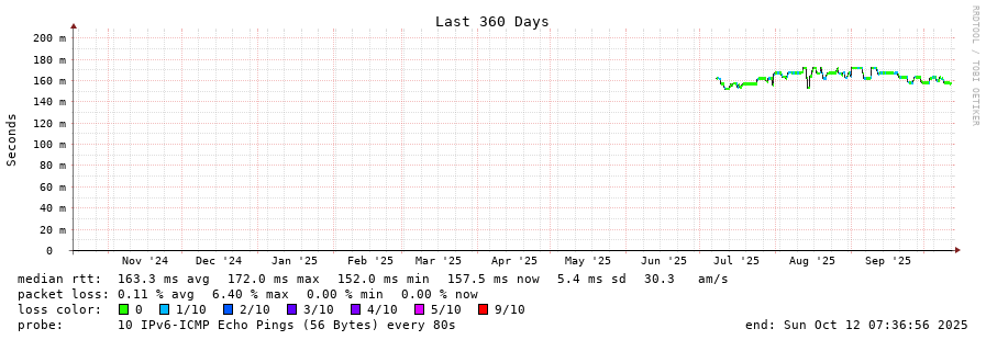 traceroute to 2604:2dc0:305::2:0:2b0 (2604:2dc0:305::2:0:2b0), 30 hops max, 80 byte packets - Generated at 2025-10-12 05:00:01