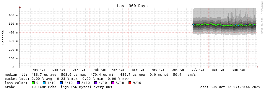traceroute to 54.36.50.225 (54.36.50.225), 30 hops max, 60 byte packets - Generated at 2025-10-12 05:00:01 3 > 4 > 5 > 6 > 7 > mad-mad2-pb1-ptx.es.eu (54.36.50.225) [AS16276] 0.459ms 0.519ms 0.263ms