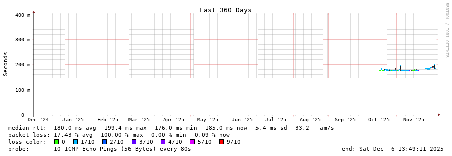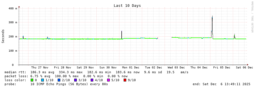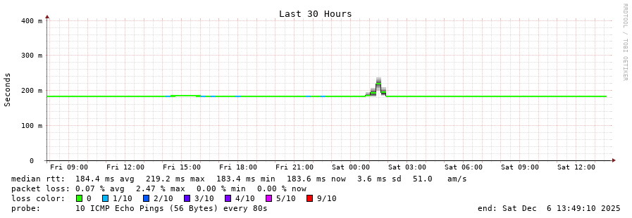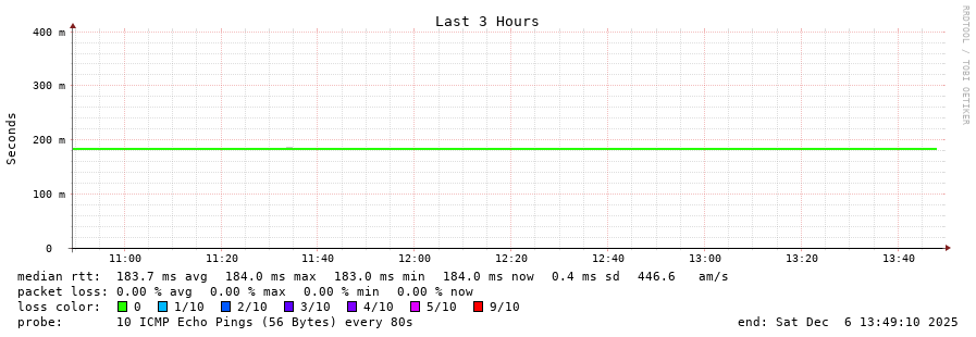 10 > 213.144.185.45 (213.144.185.45) [AS6762] 182.099ms 181.932ms 181.994ms