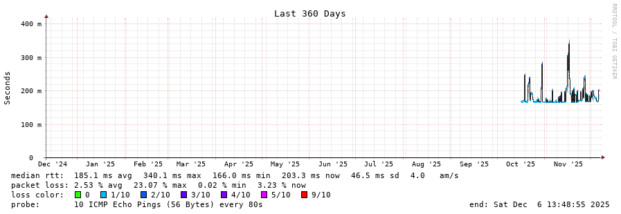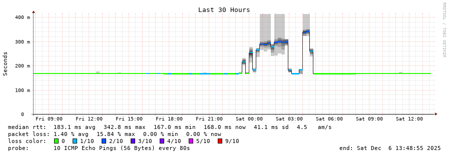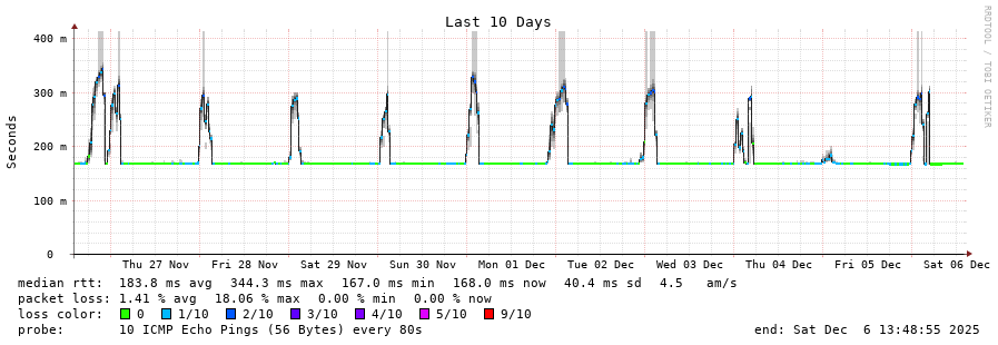 13 > 179.51.112.214 (179.51.112.214) [AS263210] 168.464ms 168.246ms 168.661ms
