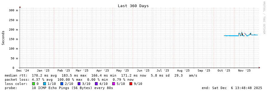 13 > 179.51.125.21 (179.51.125.21) [AS263210] 170.908ms 170.825ms 170.855ms