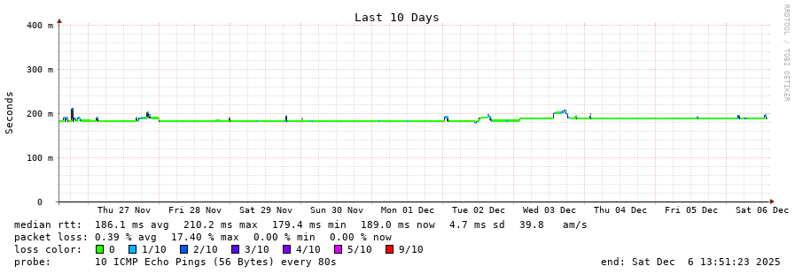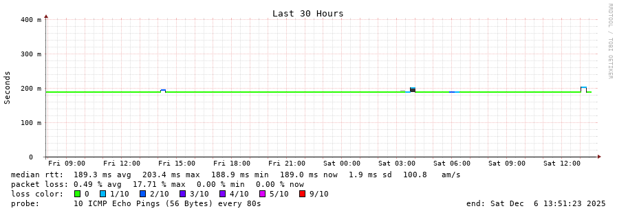 traceroute to 170.80.83.174 (170.80.83.174), 30 hops max, 60 byte packets - Generated at 2025-12-06 13:30:01