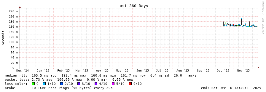 13 > 200.25.85.227 (200.25.85.227) [AS7195] 156.356ms 156.399ms 156.415ms
