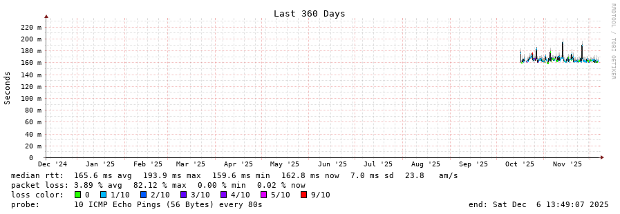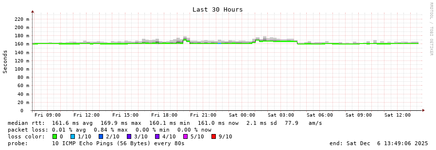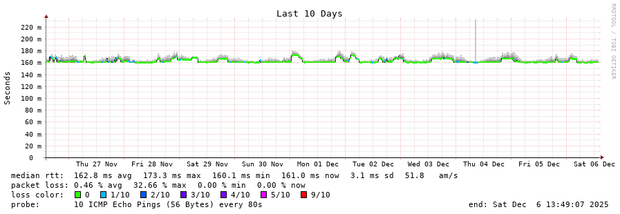 12 > 200.25.85.227 (200.25.85.227) [AS7195] 156.371ms 156.333ms 156.413ms