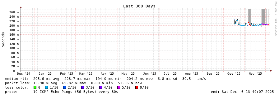 traceroute to 189.51.18.119 (189.51.18.119), 30 hops max, 60 byte packets - Generated at 2025-12-06 13:30:01