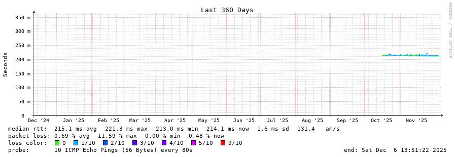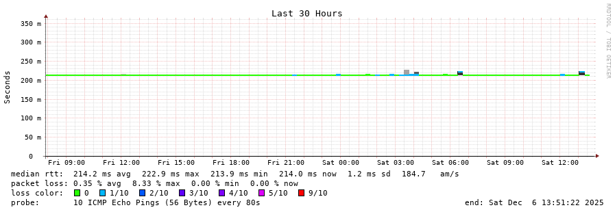 traceroute to 168.195.101.40 (168.195.101.40), 30 hops max, 60 byte packets - Generated at 2025-12-06 13:30:01