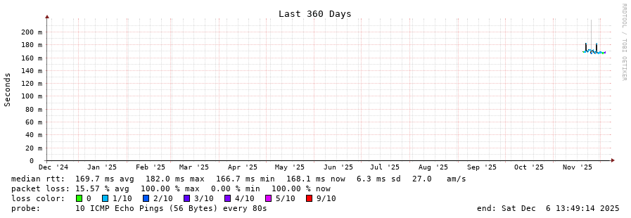 traceroute to 200.95.176.148 (200.95.176.148), 30 hops max, 60 byte packets - Generated at 2025-12-06 13:30:01